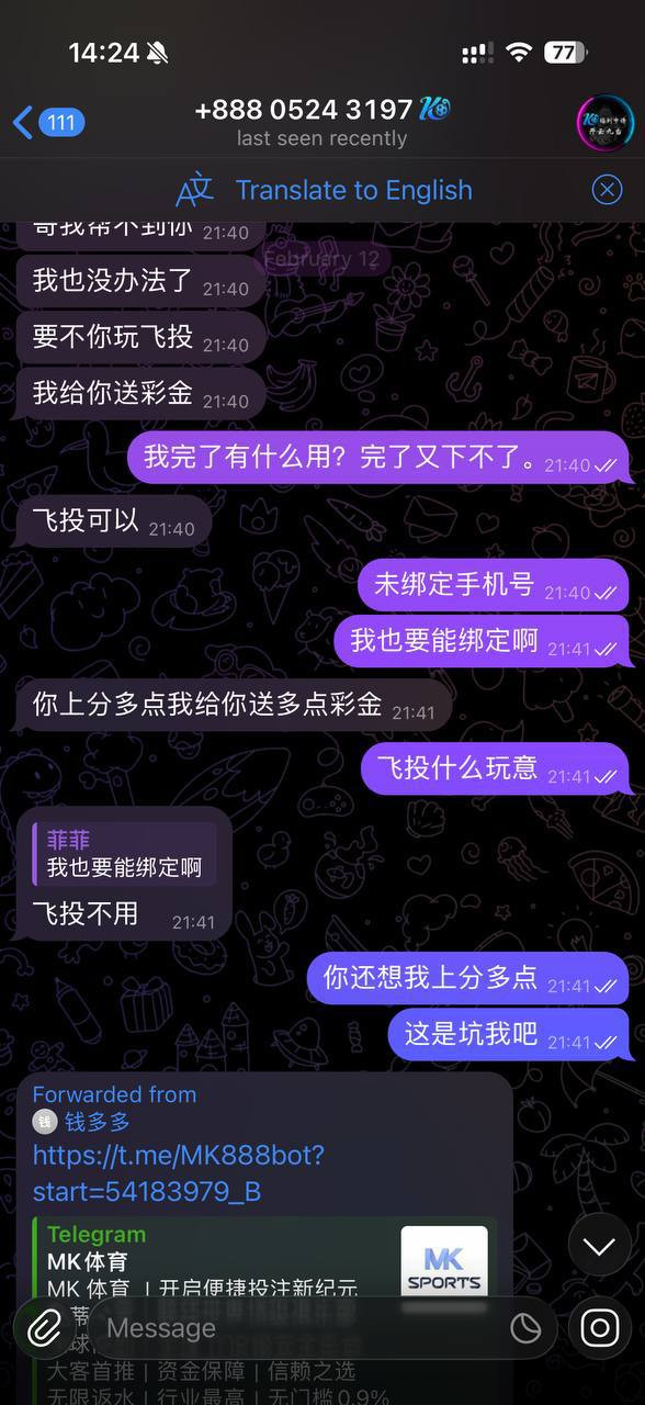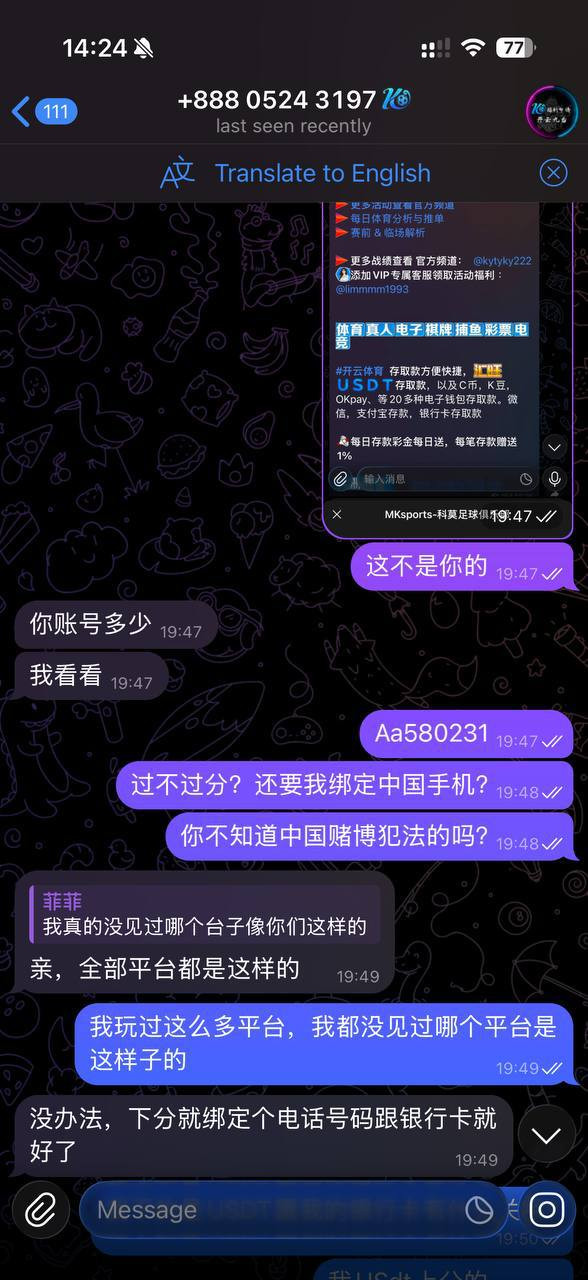 更离谱的是,绑了之后钱照样提不出来,还美其名曰“系统问题”,然后推你去另一个平台(MK)充值,说那边补给你。结果MK也一样:充值随便充,提现又要绑中国号码和信息,不绑就卡死在那儿,绑又绑不上,循环死局。